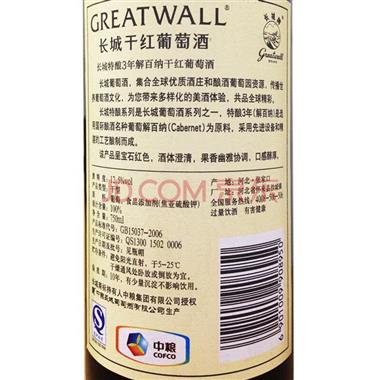 长城(GreatWall ) 红酒 特酿3年解百纳干红葡萄酒 整箱装 750ml*6瓶