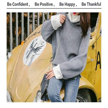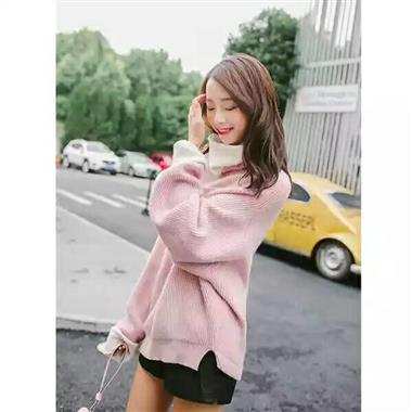 秋冬季高领毛衣女韩版学生宽松套头加厚甜美软妹蝙蝠袖针织衫外套