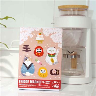 猫咪插画冰箱贴磁铁 粉色樱花款