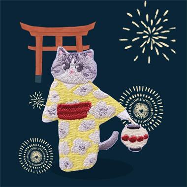 一只猫咪 ×哥斯拉小姐合作款刺绣贴 布贴--黄和服美短