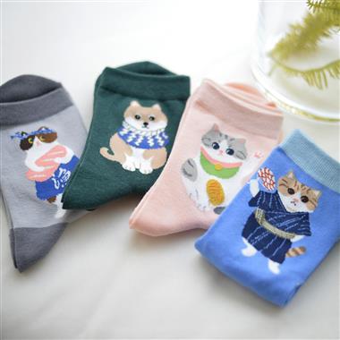 一只猫咪 独家原创可爱猫咪喵星人家居袜短袜棉袜 四款优惠套装